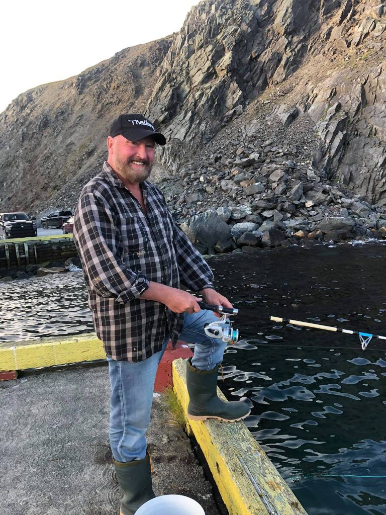 My husbands uncle Shawn, fishing at the Droke, Jobs Cove, CBN, NL