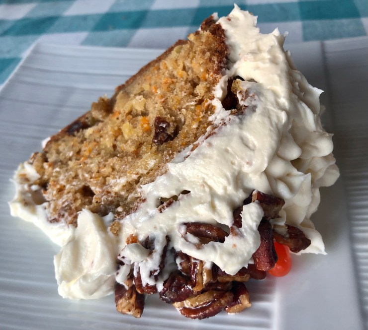 When it comes to desserts, this Carrot cake recipe is hands down my most favorite! Moist and loaded with juicy pineapple and plump raisins its sure to please even the pickiest of eaters. I topped this one off with a luscious cream cheese frosting & decorated with the easiest candied pecans. I’m sure this tried and true recipe will surely become one of your families favorites as well.