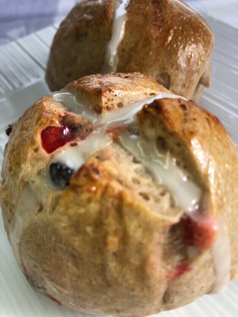 Before we Begin let me tell you a little history about hot cross buns they’ve been around for many many centuries, even before Jesus Christ. They were baked to celebrate the pagan God Eostre, The goddess of dawn and fertility.